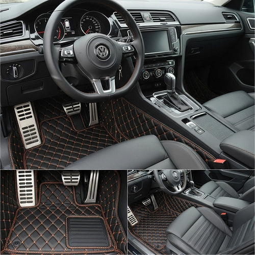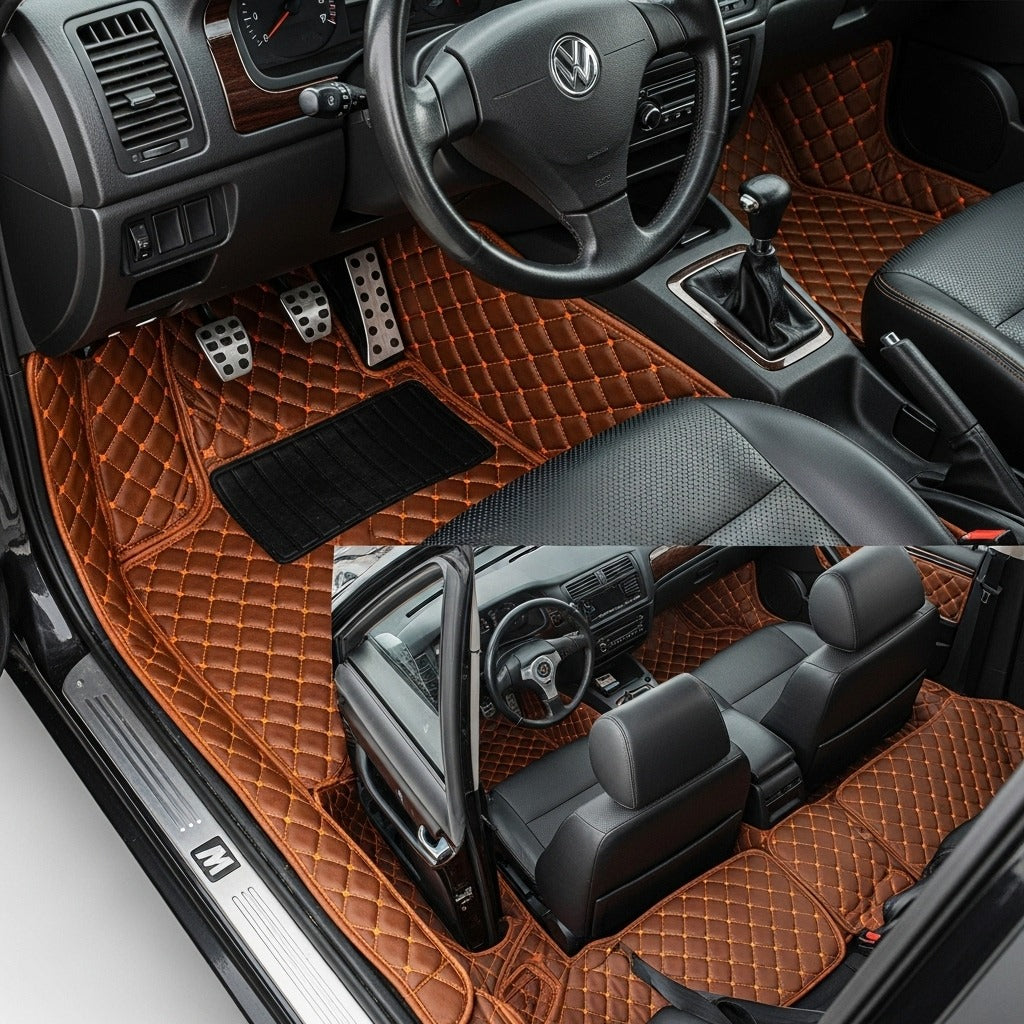 Feitos com couro vegano ultradurável e materiais de alta classe, nossos tapetes não apenas protegem contra água e umidade, mas também adicionam um toque de elegância ao seu carro. A base antiderrapante mantém os tapetes firmemente no lugar, garantindo uma condução segura e confortável.